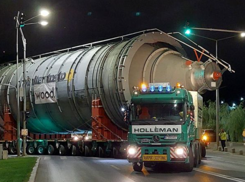 Port Agigea – DN 39A – DN 39 – A4 – DN 3 – DN 2A – DN 2 – DN 2B – DJ 203D, Buzău • trei transporturi, fiecare compus din câte două camioane, cu: – lățimi între 5,53 și 6,03 metri, – lungimi între 52 și 56 metri, – înălțimi între 5,3 și 6,22 metri, – mase cuprinse între 137 și 142 tone.